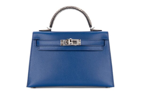 Hermès Mini Kelly Touch Bleu Royal / Ombré Chèvre Chamkila Lizard Palladium Hardware